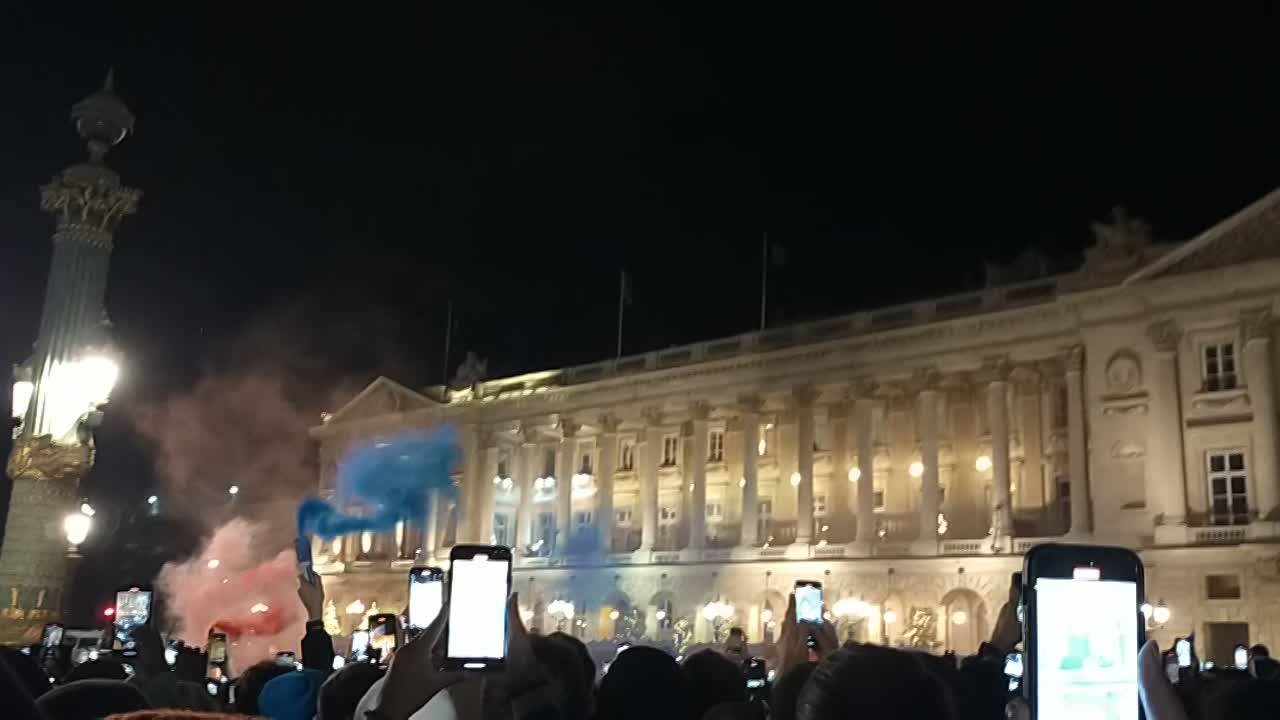 Le retour des bleus ; place de la Concorde, une belle apparition mais un peu timide; ci dessous un résumé en cliquant sur ce balcon qui malheureusement n'était pas équipé d'un micro!