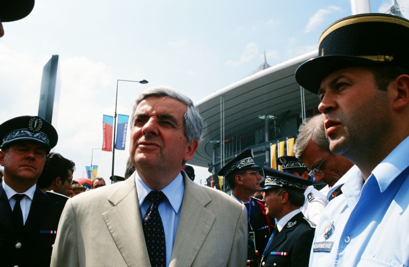 Chevènement Jean Pierre, ministre de l'intérieur en visite au stade de France à la coupe du monde 98