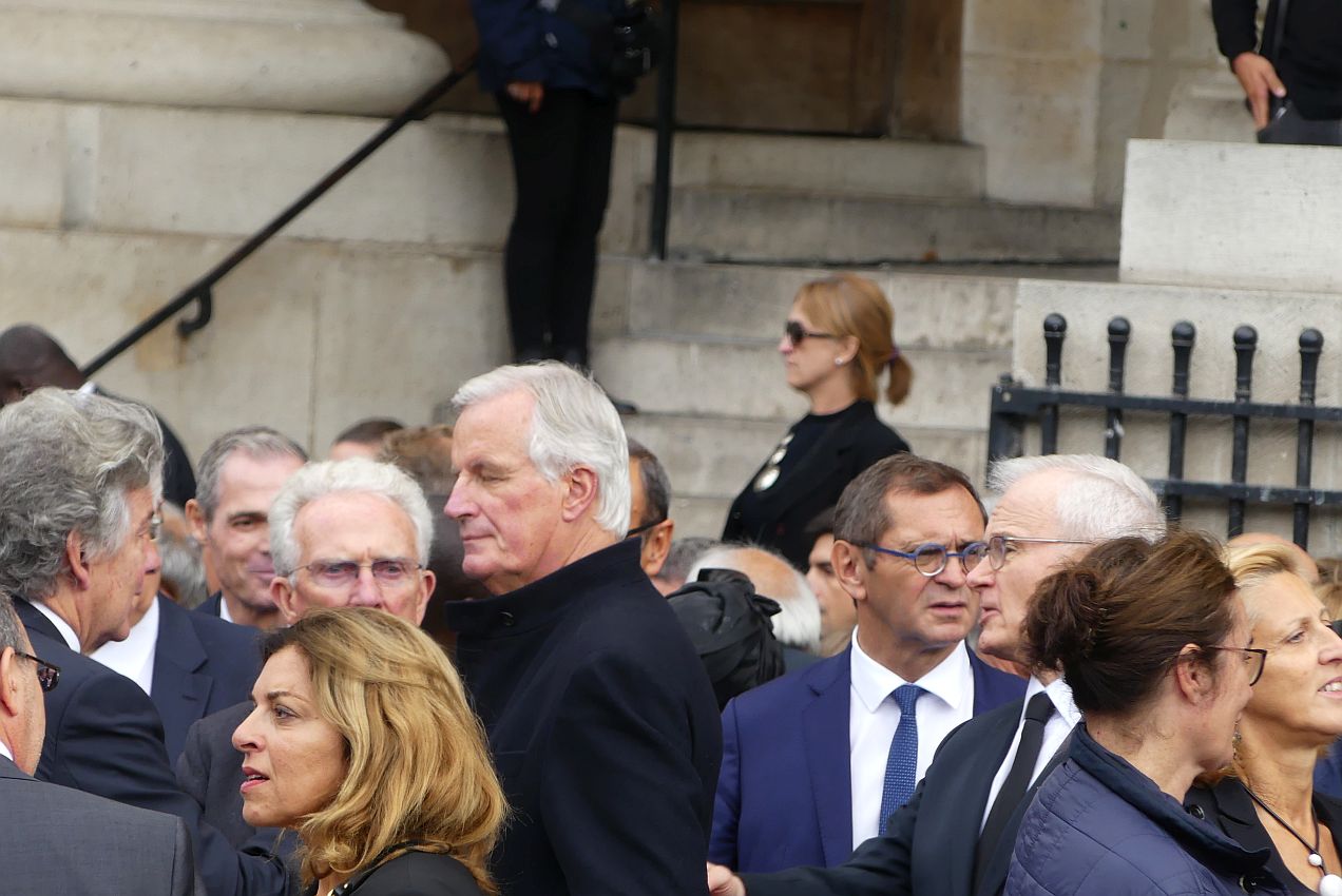 Barnier Michel le 20 septembre 2019 en hommage à Jacques Chirac sur le parvis de l'église saint Sulpice juste avant sa nomination  comme négociateur en chef de l'Union européenne chargé de la préparation des relations futures avec le Royaume-Uni.