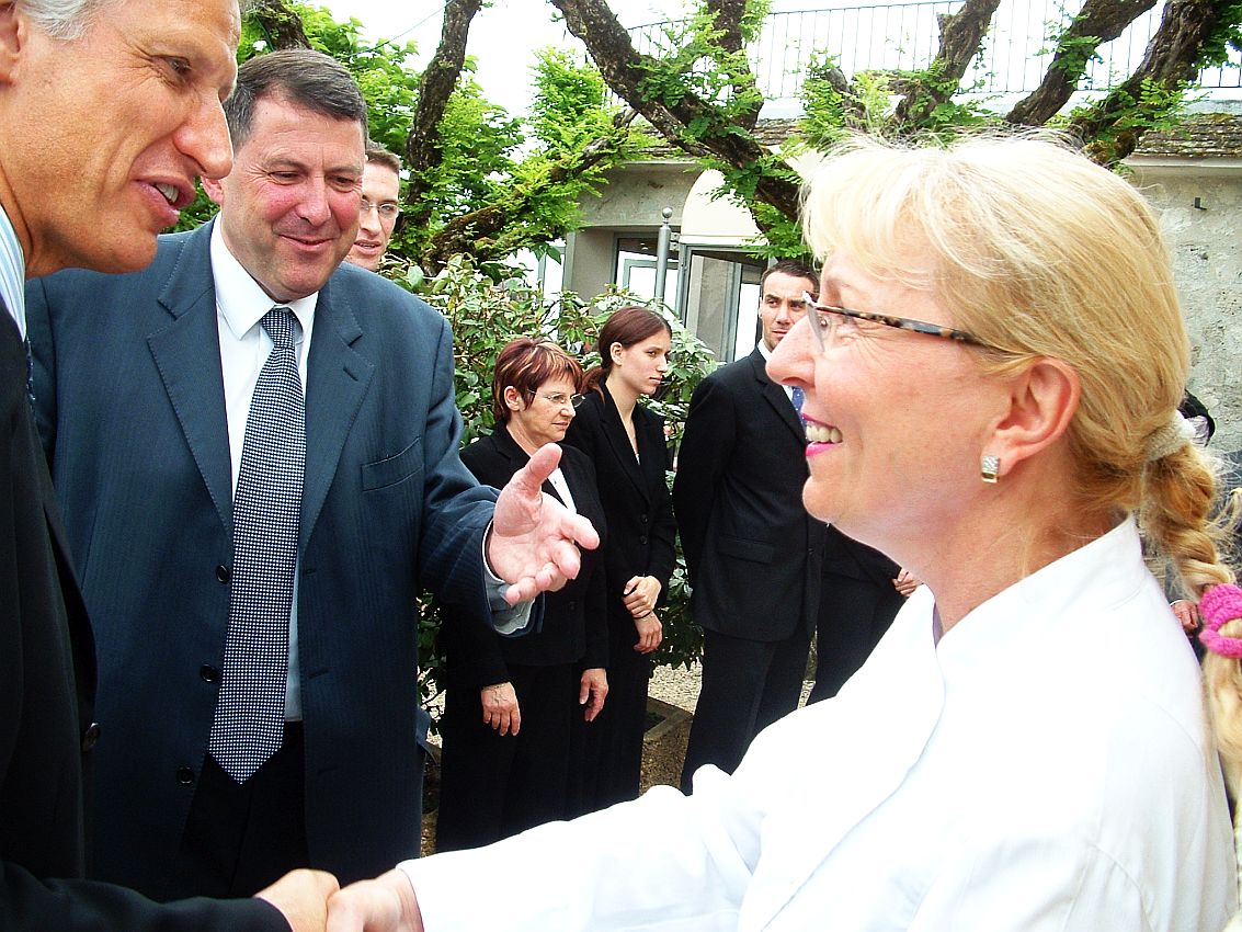 De Villepin Dominique en visite sur les hauteurs de  Bergerac  le 22 septembre 2006 avec Daniel Garrigues le maire de Bergerac de l'époque.