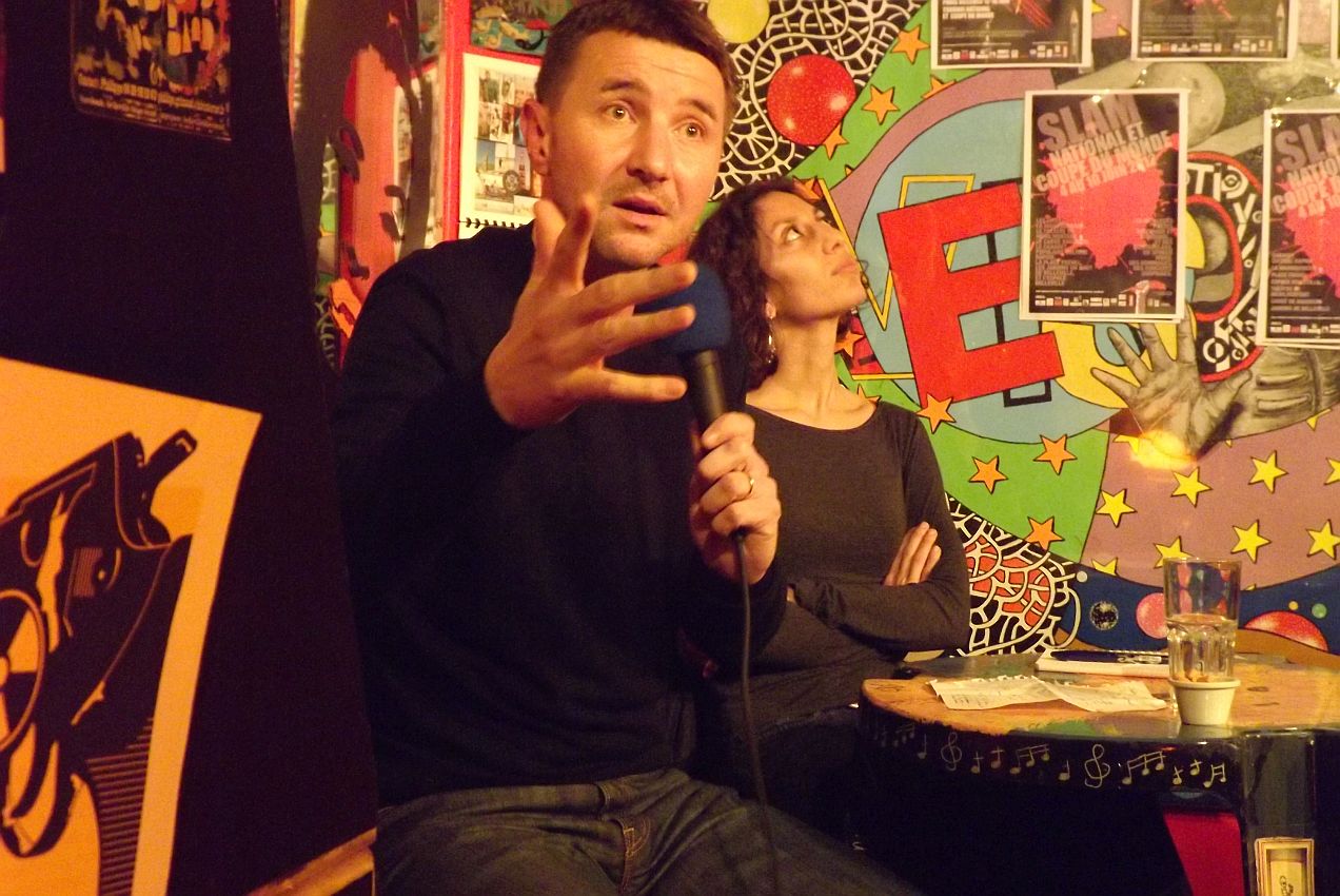 Besancenot Olivier , en campagne dans un café du 19ème le 12 février 2012