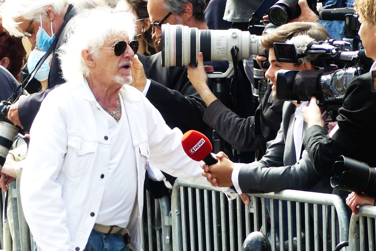 Aufray Hugues en pleine interview de Cnews devant l'église saint Germain