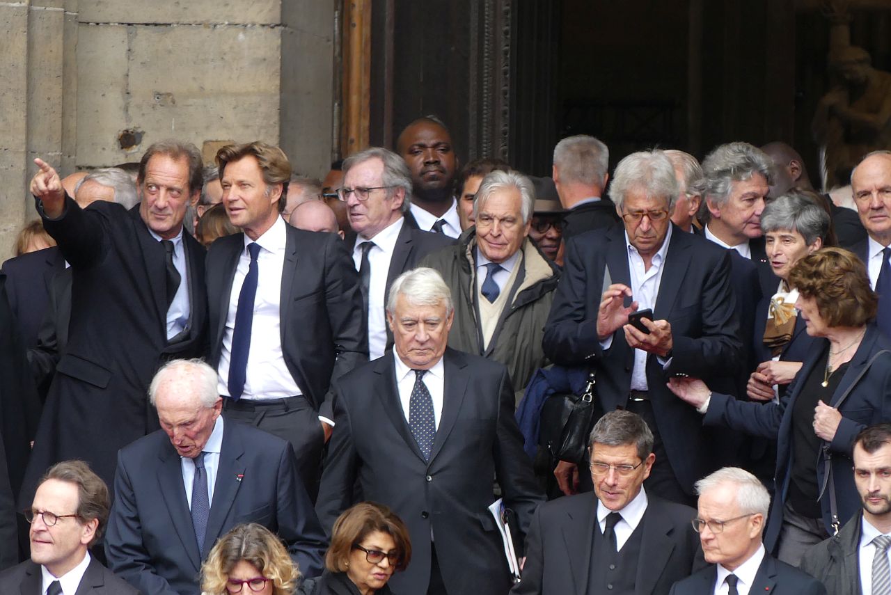 Delahousse Laurent avec Vincent Lindon le 30 septembre 2019 à la sortie de l'église Saint Sulpice avec entre autres Gilles Le Gendre ou Thierry Breton....